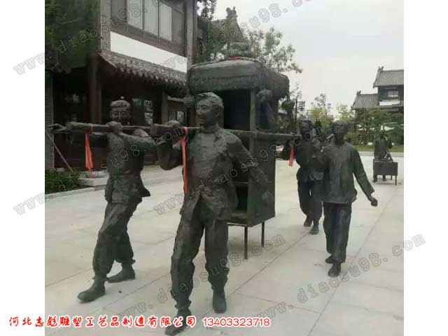 抬轎子雕塑由我公司制作而成,形象生動(dòng)。我公司提供各種雕塑的鑄造,歡迎聯(lián)系洽訂。