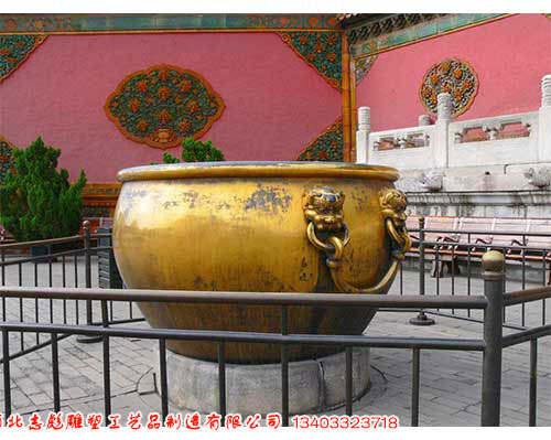 仿古銅缸一般擺放在廣場(chǎng)或者園林中,具有很好的裝飾作用,仿古銅缸擺放在家中有很好的鎮(zhèn)宅避兇的作用.