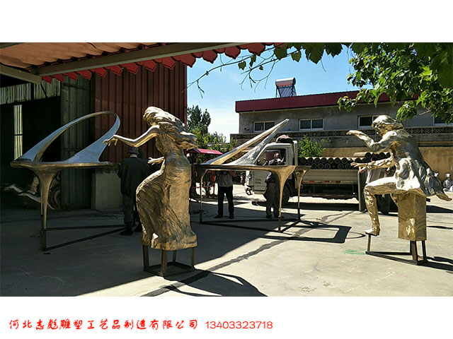 這是一件鋼琴演奏園林雕塑作品,采用鑄銅工藝制作而成,整件雕塑造型獨(dú)特,將人與琴完美結(jié)合在了一起,游客也成了雕塑的一部分。