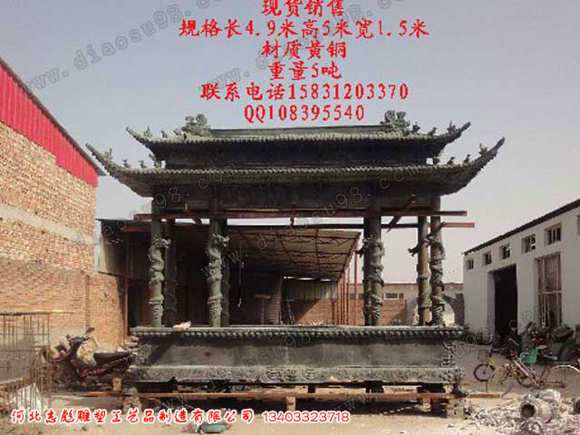 本作品為5米銅制香爐,該香爐為客戶訂做作品,采用銅鑄而成,高五米。我公司做為銅雕鑄造廠家,提供各種雕塑的訂做。