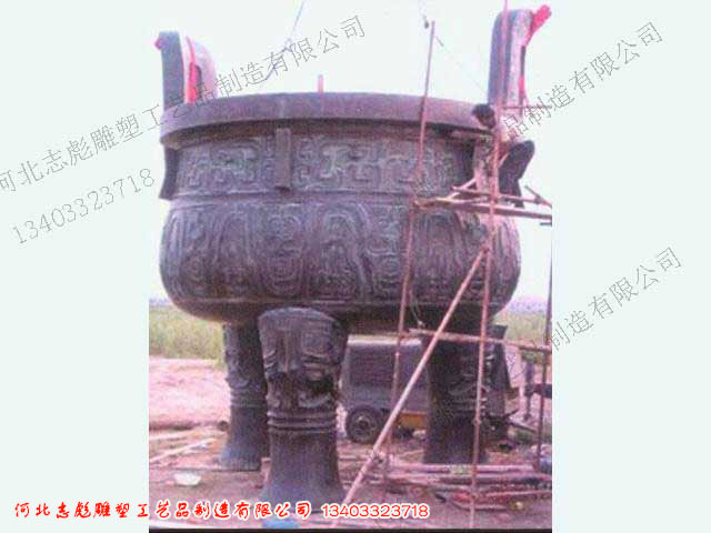 此為志彪銅雕廠制作的大型青銅器鼎安裝圖.